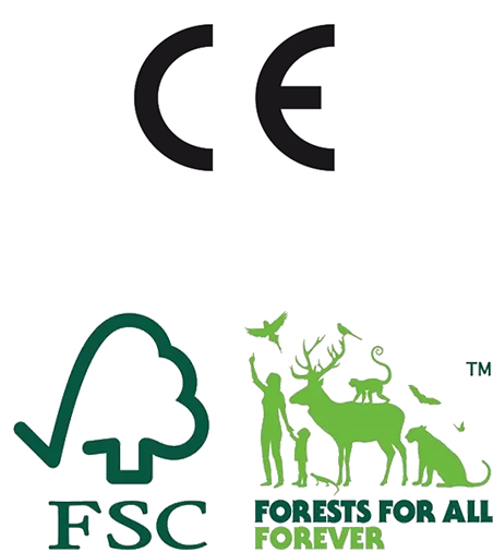 Trademarks are used to identify all those products that contain wood coming from forests that are managed in a controlled and responsible way, according to strict environmental, social and economic standards. Chain of Custody (COC) certification guarantees the traceability of certified materials. In this way, we can guarantee the proper control over the origin of the wood used for our products and we show in a transparent way our active contribution to responsible forest management and environmental protection. On demand, we can supply FSC or PEFC certified products.